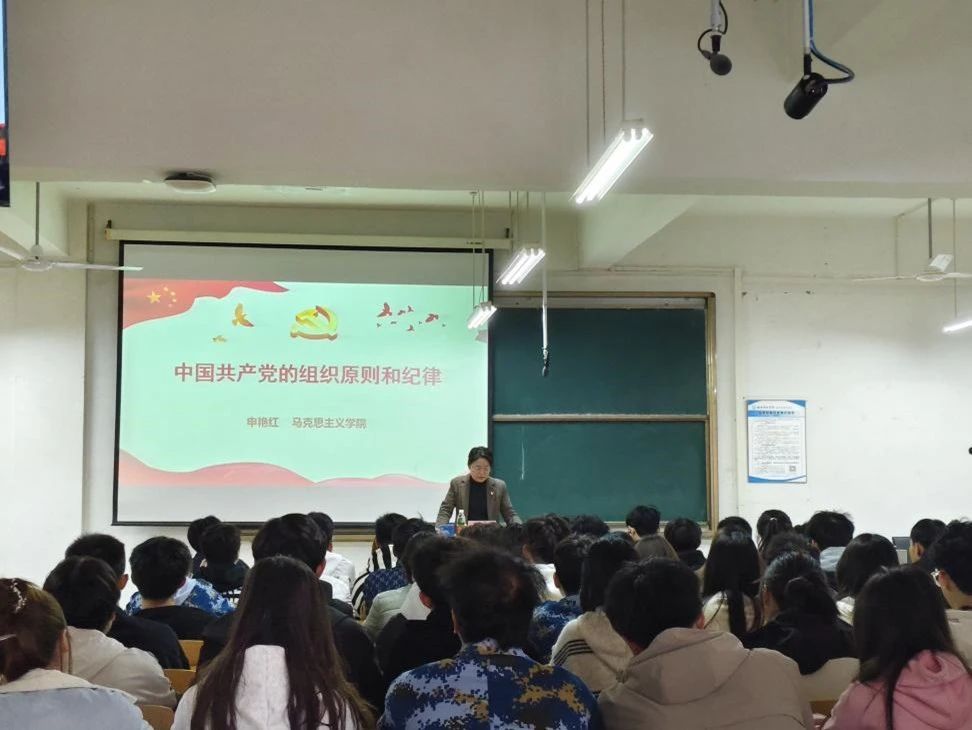 随后,申艳红老师详细地讲述了党的组织原则和纪律。她从形成与发展,基本原则和重要意义这三方面向同学们详细地介绍了民主集中制。她强调民主集中制作为党的根本组织原则,不仅体现了党的民主性,同时也为党的纪律提供了有力保障。