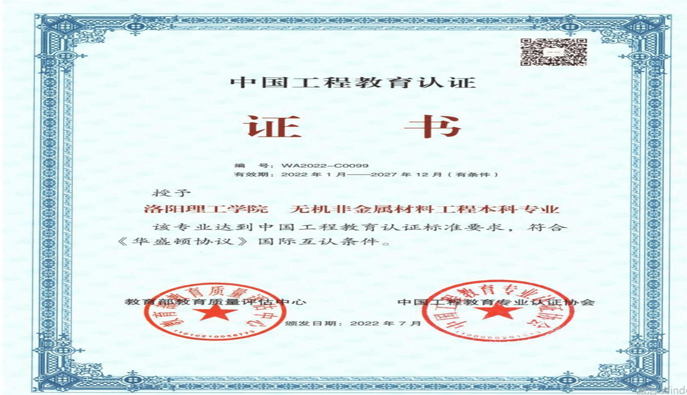 6月25日,中国工程教育专业认证协会发布了《关于公布西南石油大学机械工程等422个专业认证结论的通知》,我院无机非金属材料工程专业完成了学校自评、自评审核、专家组现场考查、结论审议等程序,通过了工程教育认证,有效期6年(有条件),具体时间为2022年1月至2027年12月。这是我校首个通过工程教育专业认证的专业,也是该专业在获批国家级一流本科专业建设点之后的又一重要专业建设成果。