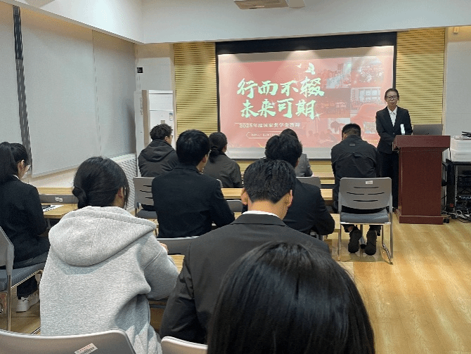 2025年10月10日下午,洛阳理工学院材料科学与工程学院在致实书院宣讲室进行了2024-2025学年国家奖学金的答辩会。学院辅导员李千慧、员星、曾坤及石冬雷共同组成评审席,对通过国家奖学金前期资格审查的8名同学的答辩进行综合评定,现场气氛庄重而热烈。