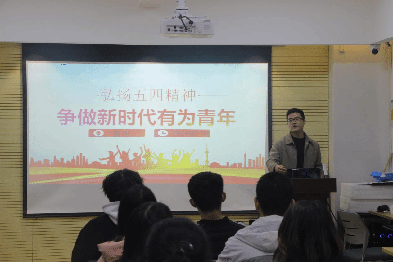 活动伊始,曾坤老师从五四青年节的来历入手,介绍了五四运动的历史背景和重要意义,接着详细阐述了五四精神的内涵,包括“爱国、进步、民主和科学”。随后,曾坤老师通过解读五四精神的实质,让发展团员们理解到忧国忧民、积极创新、热爱祖国和探索科学的重要性。最后,曾坤老师强调了作为新时代青年,应该如何从党史学习中激发信仰、获得启发、汲取力量,坚定“四个自信”,并树立为祖国、为人民,永久奋斗、赤诚奉献的伟大理想。