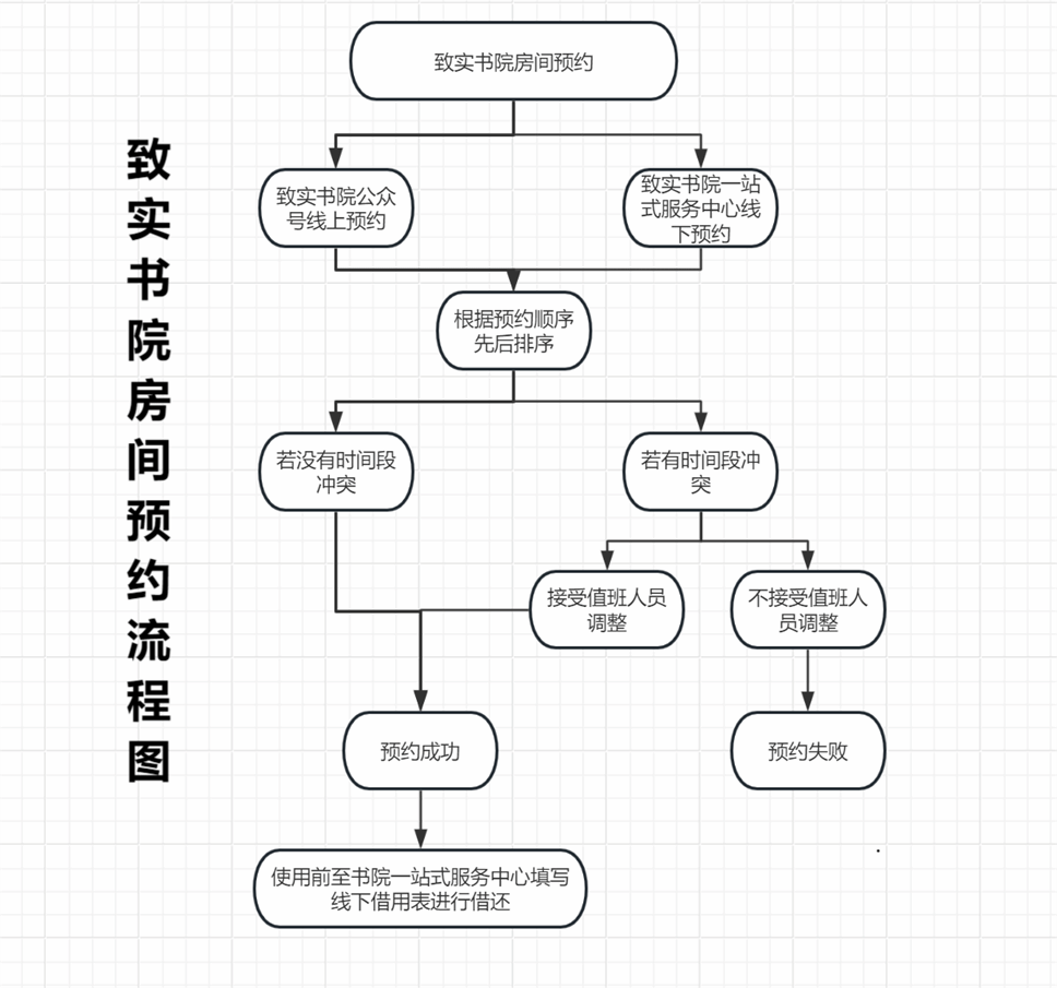 ②使用房间前需预约人到致实书院一站式服务中心进行登记 。