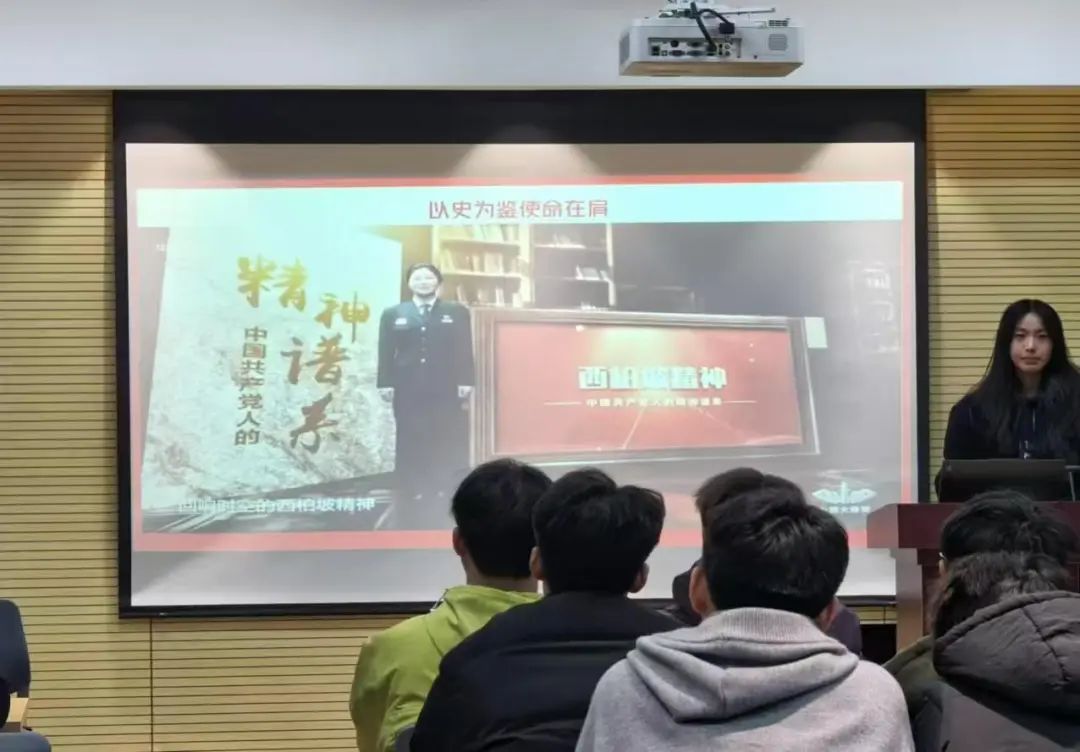 活动伊始,杨淑华老师通过丰富的史料介绍了西柏坡精神形成的历史背景。她指出,当时中国革命处于重大历史关头,新中国诞生已为期不远。在宣讲过程中,杨老师深入阐释了西柏坡精神的内涵,西柏坡精神是中国共产党在革命斗争时期形成的重要精神财富,主要包括坚定信念、艰苦奋斗、依靠群众和务实创新等核心要素。杨老师也通过播放历史故事、引用经典事例等方式,生动形象地展现了西柏坡时期中国共产党人面临复杂局势时的坚定信念与智慧决策,让在场同学们深刻领悟到西柏坡精神在新中国成立进程中的重要历史意义。在互动环节中,大家积极发言,分享了自己对西柏坡精神的理解和在今后工作中的应用实践,气氛热烈。大家普遍认为,此次宣讲活动不仅提高了对西柏坡精神的认识,也增强了团支部之间的交流与合作。