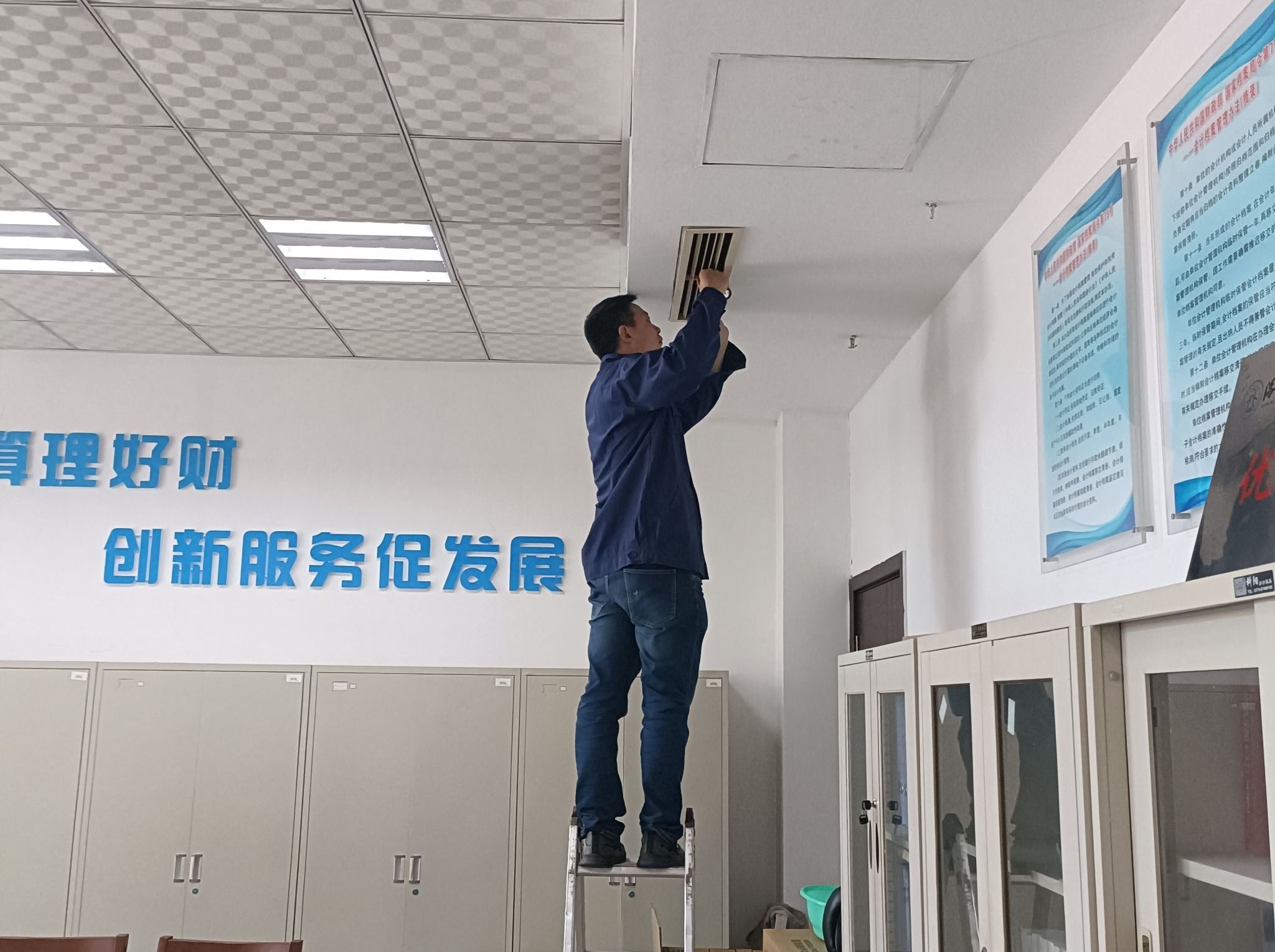 为了进一步保证中央空调制冷效果、提高室内空气质量以及节约能源,同时也给广大干部职工创造一个安全、舒适,凉爽的工作环境,5月12日,在全国第十五个防灾减灾日到来之际,动力中心组织王城校区全体员工,对校园建筑的中央空调进行全面检修和清洗灭菌,确保在夏季制冷期间中央空调能够正常运行,因为中央空调长时间使用会导致空气中的灰尘、细菌等污染物集聚在其内部,这些污染物不仅会影响室内空气质量,还会导致中央空调的故障。