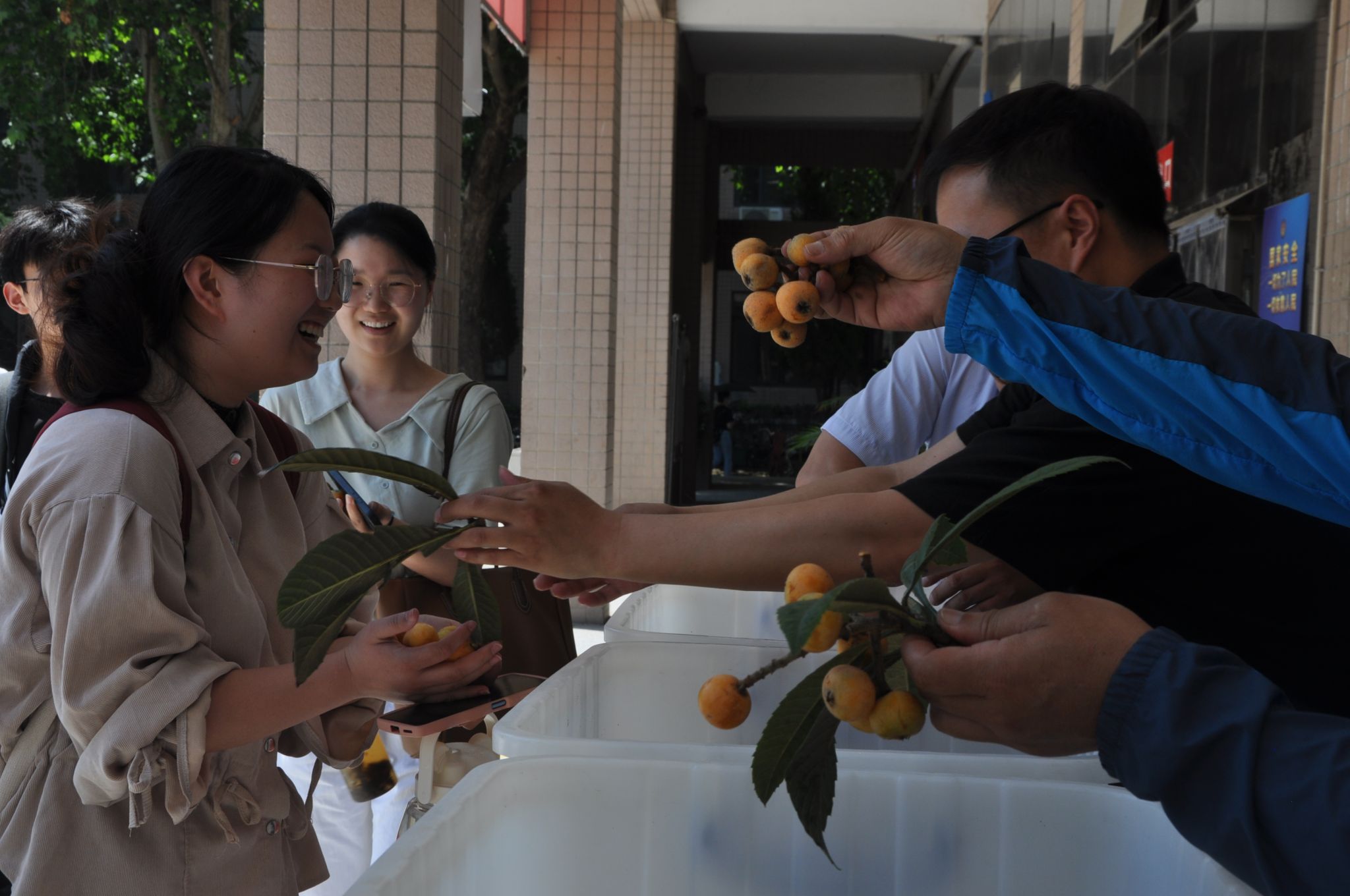 在开元校区子衿餐厅前开展“校园枇杷香 师生喜品尝”活动,把学校的果实分享给每一位同学,让同学们品尝到校园水果的甜美,现场吸引了近300名师生参与品尝。整个活动秩序井然、温馨有趣。现场来来往往的师生们纷纷驻足,对此次活动的举办给予了满满的点赞。陈同学称学校有很多果树,每年枇杷成熟了都会摘好摆在食堂门口分给大家吃,同学们很开心。学生们品尝后表示,枇杷果很甜,后勤老师们的行动很暖,洛理又成了“别人家的学校”。有的毕业生称,这是学校给自己的特别的毕业礼物,会铭记终生,毕业后会常回母校看看。