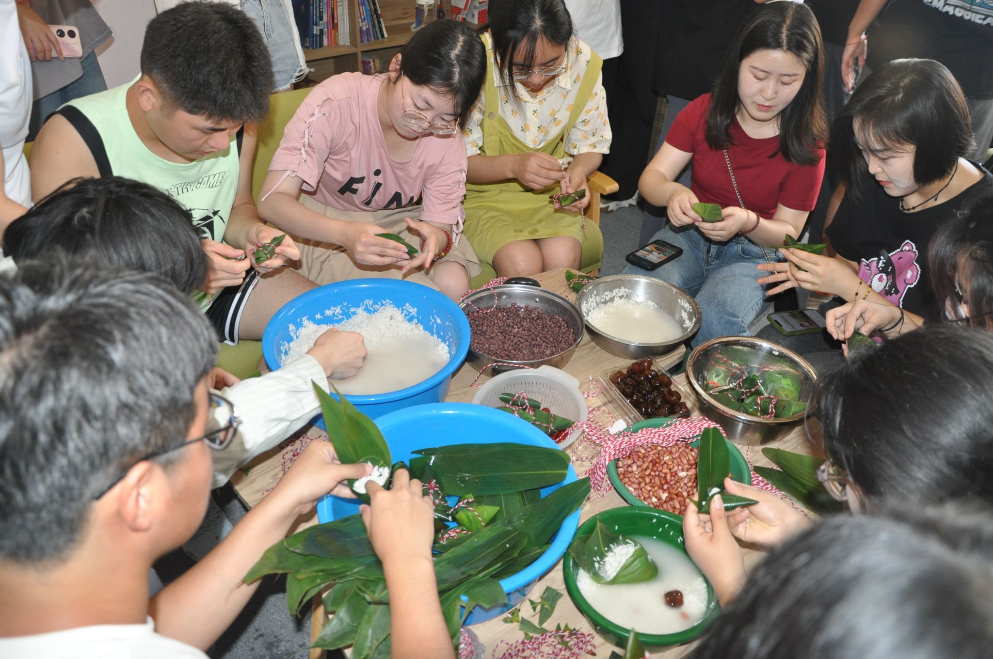 6月20日上午,物业服务中心公寓部在王城校区致实书院生活导师工作坊举办以“浓情五月 欢度端午”为主题的迎端午活动。活动现场,气氛热烈,吸引了众多学生的积极参与。有的在一丝不苟地用粽叶包粽子,有的在用针线小心翼翼地绣着香包,有的在开开心心地编制五彩绳……