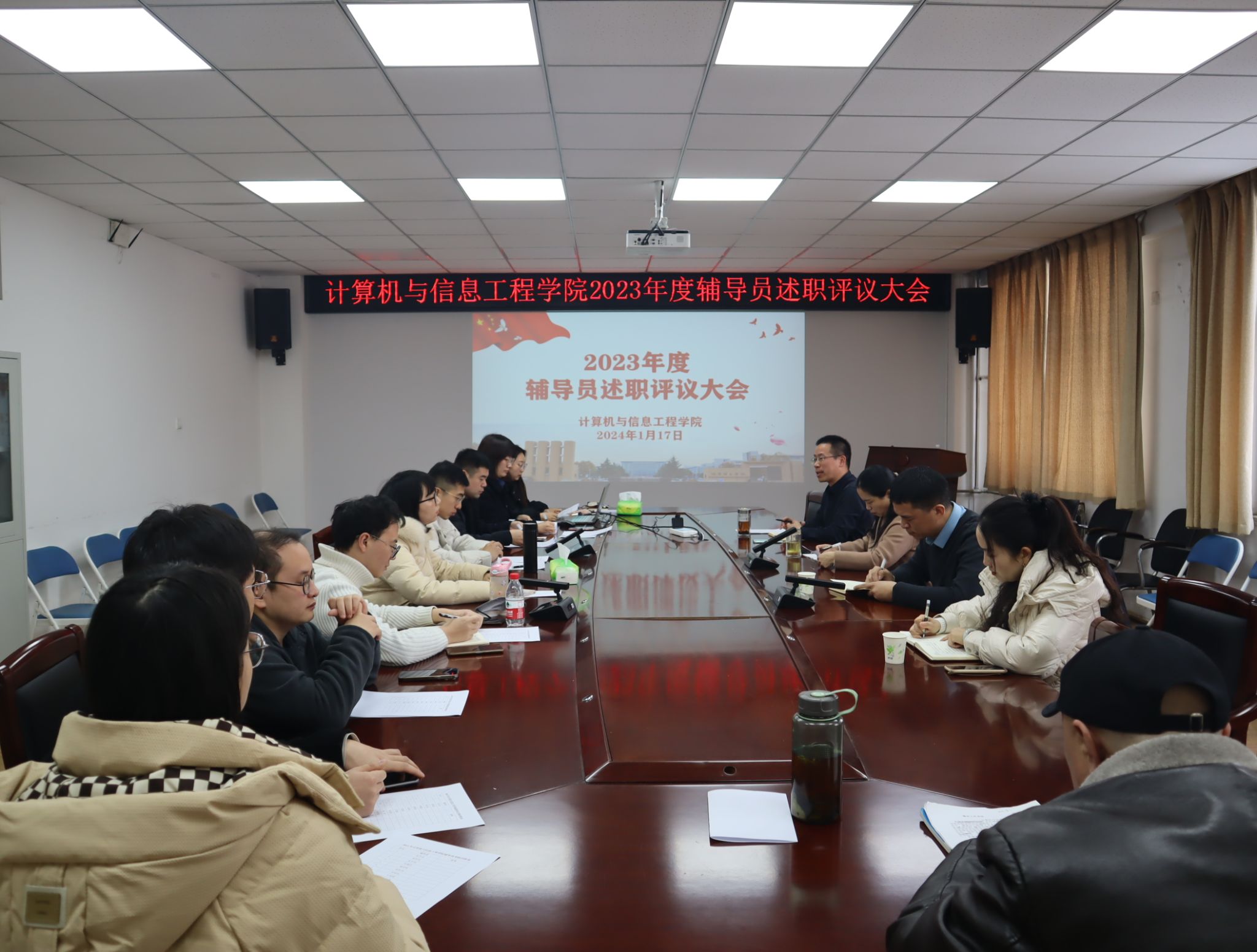 1月17日上午,我院在实验楼A204会议室召开计算机与信息工程学院2023年度辅导员述职评议大会。学院党委书记刘爱萍、副书记邵建伟、学生处副处长李亚逊出席会议,全体辅导员参加会议。会议由党委副书记邵建伟主持。