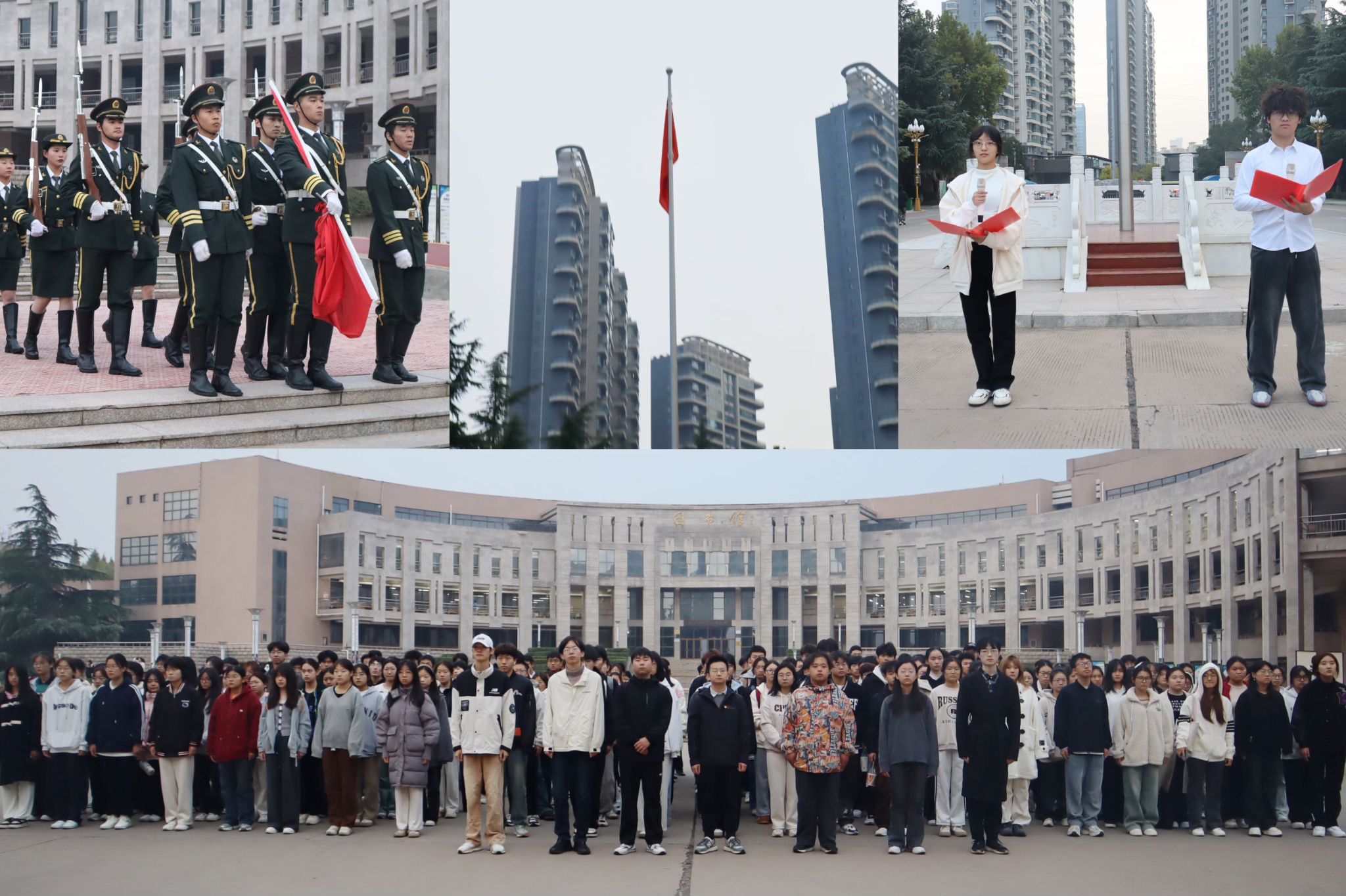 活动共有出国旗,升国旗、奏唱国歌和国旗下演讲三项议程。参加活动的师生精神状态昂扬向上,面向鲜艳的五星红旗,齐唱国歌,行注目礼。B240402班封诗雨同学和B240403班陈星宇同学作为学生代表围绕《以青春之名,书写时代华章》进行主题演讲。他们在演讲中谈到“要铭记历史,不忘初心;要精进学业,不惧挑战;要心怀热血,保持奋斗激情。在青春的赛道上奋力奔跑,为中国式现代化挺膺担当”。引起现场师生的阵阵掌声和强烈共鸣。