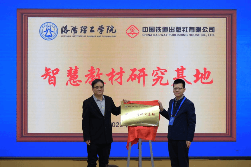 会议期间,我校副校长石念峰教授还分别与秦绪好副主任、杨泽辉总经理为“智慧教材研究基地”、“智慧教学校企合作单位”揭牌。秦绪好副主任、杨泽辉总经理分别向洛阳理工学院赠送了图书及人工智能虚拟仿真实验平台。此次合作是响应教育部AI赋能教育号召的具体行动,将从产、学、研、用多维度深化教育出版合作与校企协同,助力智慧课程打造,进一步提升教学质量与人才培养水平。