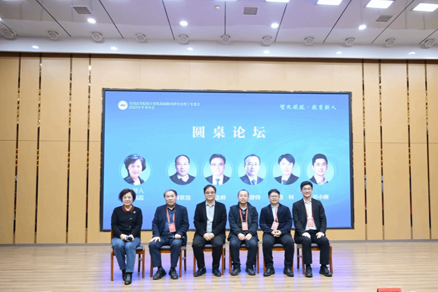 李凤霞教授主持,何钦铭教授、石念峰教授、薛静锋教授、熊轲教授(北京交通大学)、彭小刚副教授(深圳大学)参加了圆桌论坛。各位专家围绕着人工智能的体系建设、教材建设、师资培训、产教融合、资源建设等展开交流,更提出了可落地的解决方案。专家们一致认为,AI 时代的计算机教育需“破界、赋能、协同”——打破学科与校企边界,以技术赋能教学改革,通过校校协同、校企协同凝聚育人合力。这也为后续人工智能通识教育的体系完善、资源整合与师资建设提供了清晰的行动指引,成为本次年会的亮点之一。