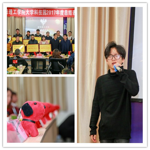 2018年01月11日,我校大学科技园2017年度总结表彰联谊会在创新大厦FS304路演厅举行,洛阳理工学院大学生就业指导中心主任路利红、洛阳市科技情报所所长冯治昌、洛龙区工信委副主任陈建华、洛阳理工学院大学科技园主任雷海栋 、洛阳市工商联经济部副部长陈淼以及大学科技园入孵项目负责人和社会企业家代表们出席活动。