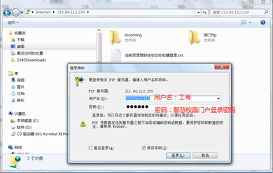 打开学校主页,点击“公共服务”/“办公FTP”即可打开登录页面