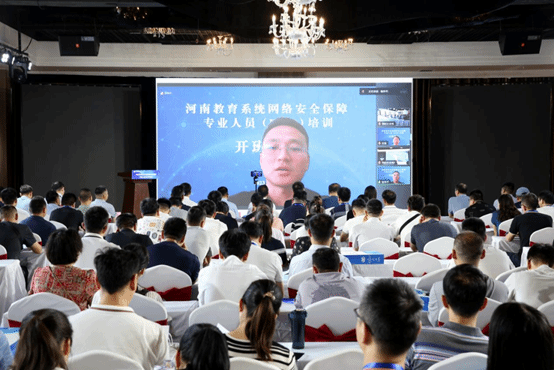 教育部教育管理信息中心网络安全处杨伟平处长讲话河南省教育信息化协会李霞秘书长主持开班仪式我校参会...