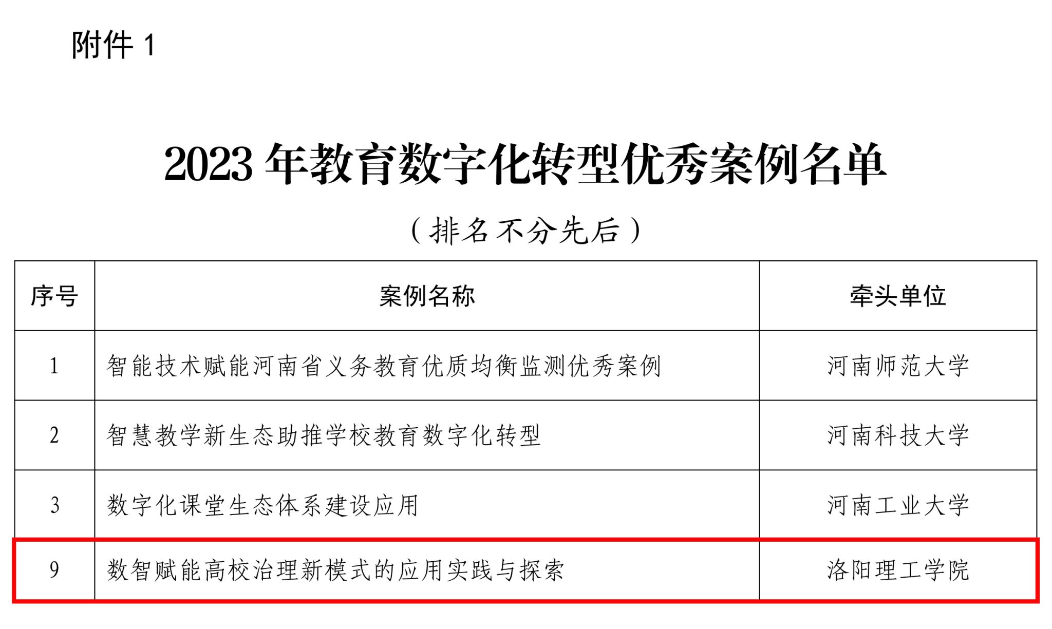 近日,河南省教育厅印发了《河南省教育厅办公室关于公布2023年教育数字化转型优秀案例的通知》(教办科...